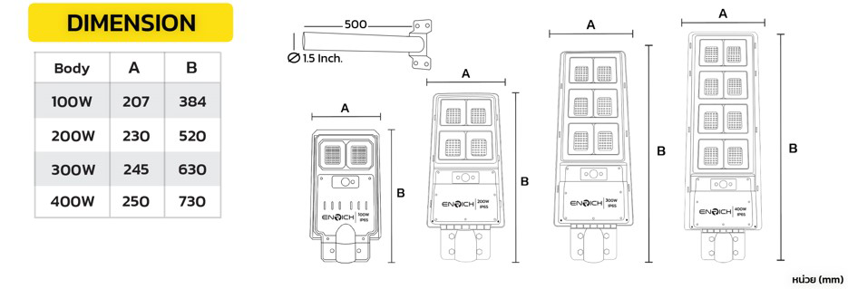 โคมไฟถนนโซล่าเซลล์ LED ENRICH Sunlight All in one 300W